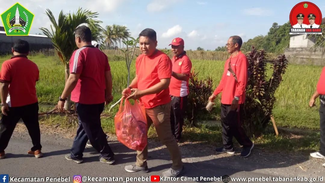 Kantor Camat Penebel melaksanakan Kerja Bakti sekaligus Penanaman Pohon dalam rangka Bulan Bhakti Gotong Royong Masyarakat dan Penyerahan Sembako kepada warga Masyarakat yang membutuhkan di Desa Buruan