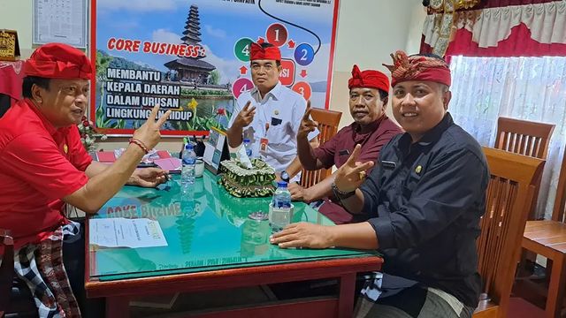 Bapak Camat Penebel melaksanakan koordinasi dengan Dinas Lingkungan Hidup dalam rangka penataan beji pura luhur batukau