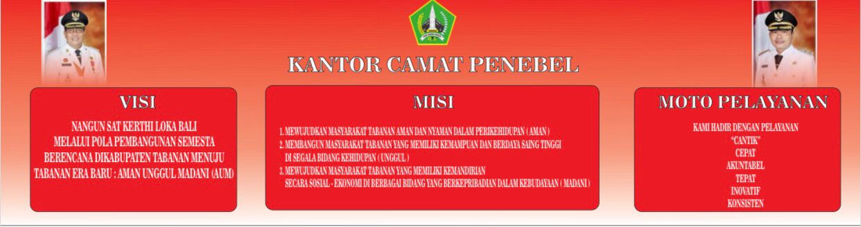 MOTTO PENEBEL Motto dapat diartikan sebagai semboyan atau pedoman yang menggambarkan motivasi, semangat, dan tujuan dari sebuah organisasi. Motto ini digunakan oleh Kantor Camat Penebel sebagai penyemangat dan pemberi arah dalam rangka memberikan pelayanan terbaik kepada masyarakat