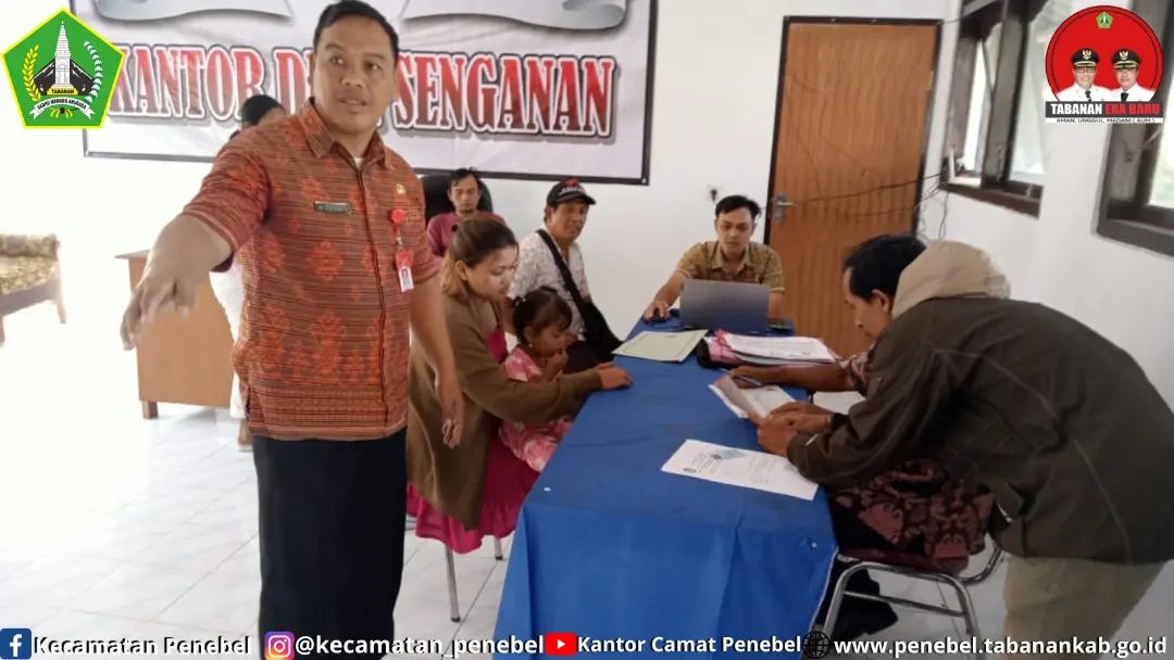 Kasi Pelayanan Umum mendampingi Tim dari Dinas Kependudukan dan Pencatatan Sipil Kabupaten Tabanan melaksanakan pelayanan di Kantor Desa Senganan