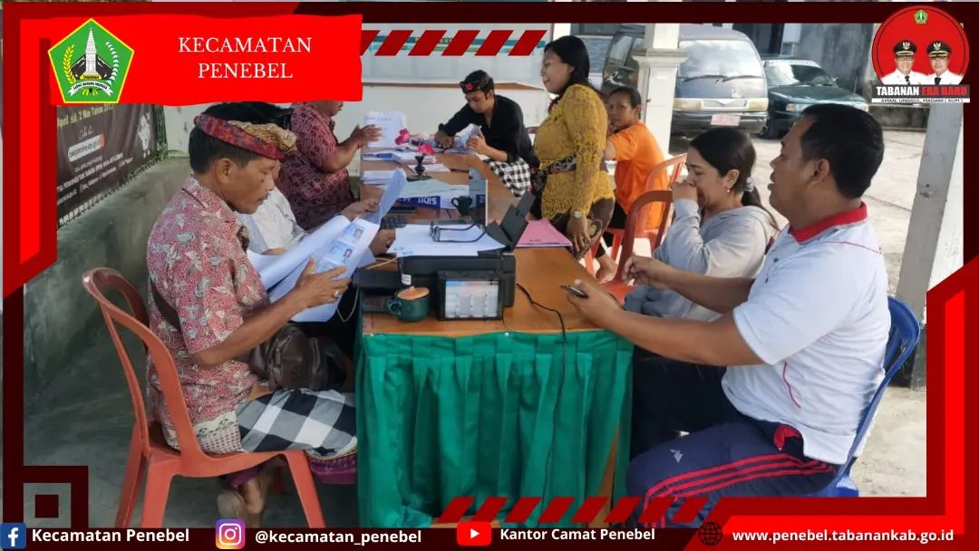 Kasi Pelayanan Umum Kantor Camat Penebel mendampingi Tim Pelayanan Pencatatan Sipil Kabupaten Tabanan melaksanakan Pelayanan di Desa Jatiluwih