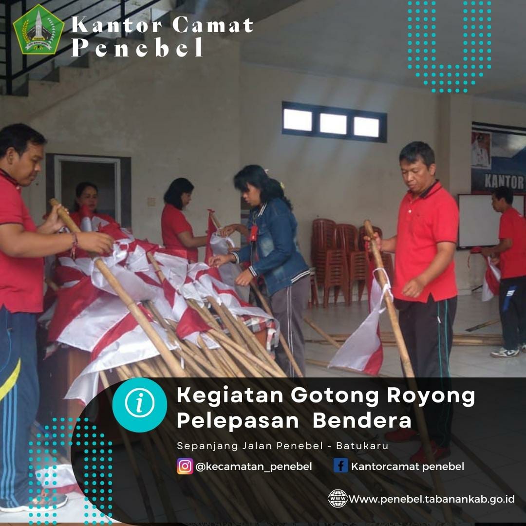 Setelah sebulan penuh memperingati perayaan HUT RI Ke 77, maka pada kamis, 1 september 2022 seluruh staf Kantor Camat Penebel melepas seluruh bendera dan umbul2 yang terpasang disepanjang jalan protokol di Kecamatan Penebel.
