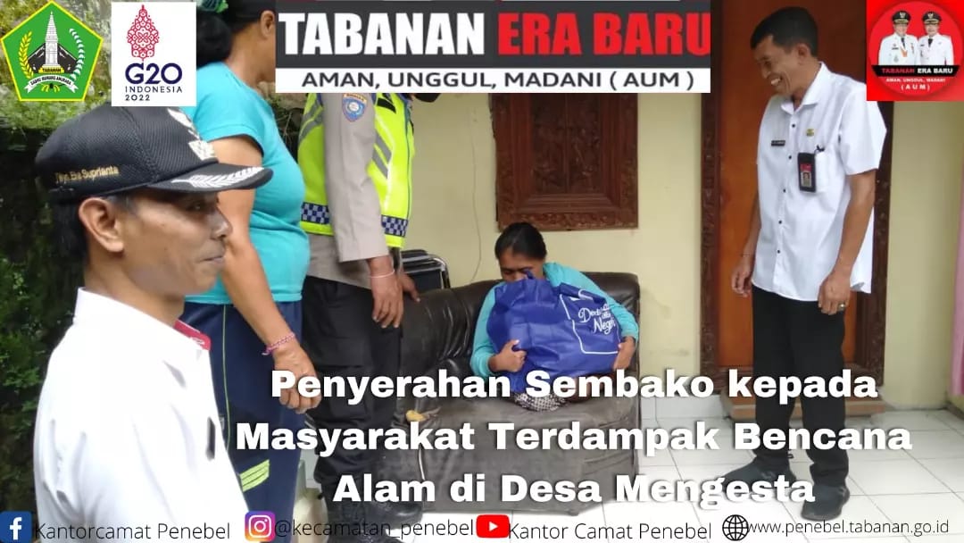 Rabu, 16 Nopember 2022 Penyerahan Sembako Kepada Masyarakat Terdampak Bencana Alam di Desa Mengesta Navigasi pos Pembinaan Evaluasi Perkembangan Desa Tahun 2023 di Desa Mengesta Penelusuran Batas Desa Tajen dan Sesandan