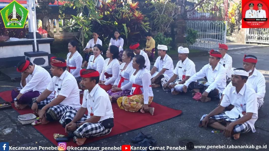 Segenap Pegawai Kantor Camat Penebel melaksanakan persembahyangan bersama dalam rangka Purnama sasih Jiyesta di Padmasana Kantor Camat Penebel.
