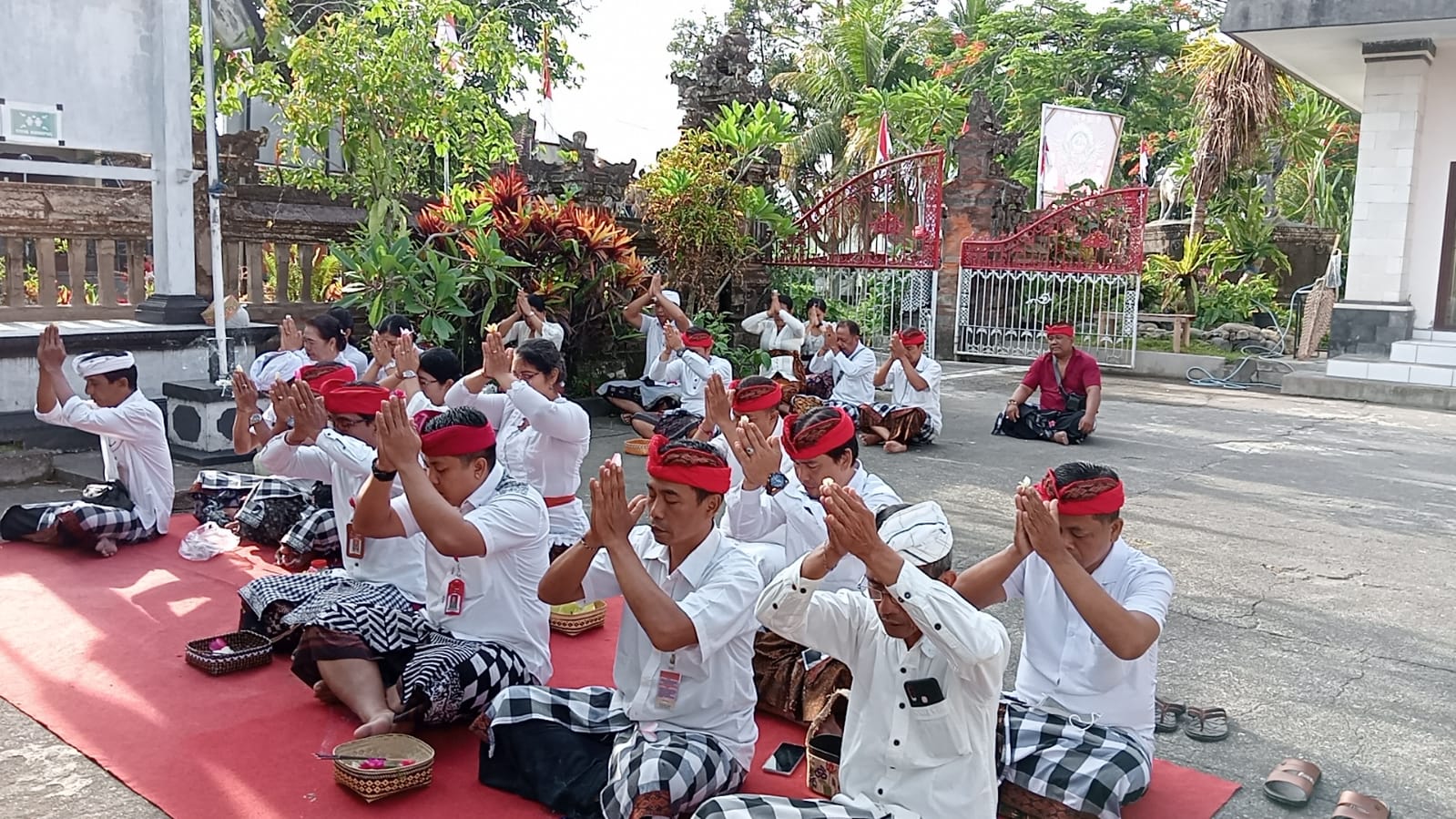 Sebelum memulai aktivitas dan pelayanan kepada masyarakat, Camat Penebel beserta seluruh staf melaksanakan persembahyangan purnama ke enam di padmasana kantor camat penebel