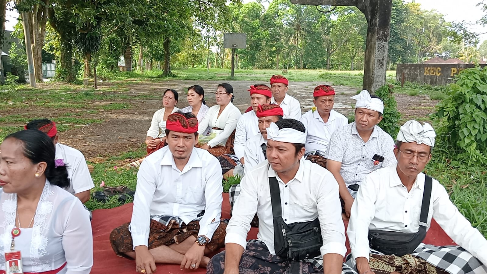 Camat Penebel beserta seluruh staf melaksanakan persembahyangan pujawali di Lapangan Kecamatan Penebel yang jatuh pada Purnama Ke enam.