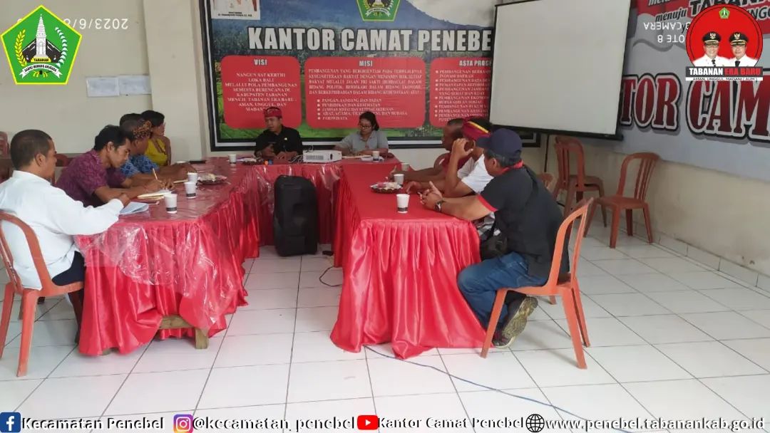 Bapak Camat Penebel melaksanakan rapat Koordinasi Persiapan pelaksanaan pemilihan Perbekel serentak Tahun 2023 dengan para Ketua Panitia Pemilihan Perbekel, Ketua BPD dan Plt. Perbekel/Sekdes Desa Mengesta, Desa , dan Desa Sangketan di Ruang Rapat Kantor Camat Penebel