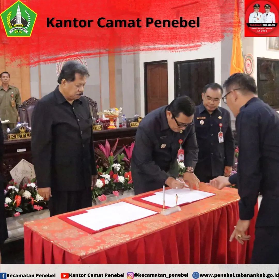 Rapat paripurna ke -8 masa persidangam II DPRD Kabupaten Tabanan Tahun 2023 telah dilaksanakan pada Senin, 28 Agustus 2023. Rapat Paripurna yang juga di hadiri oleh Bapak Camat Penebel ini, mengagendakan penandatanganan Nota Kesepakatan Rancangan Perubahan KUA dan PPAS Tahun 2023. Dengan disepakatinya Rancangan Perubahan KUA dan PPAS Tahun 2023 ini, selanjutnya akan menjadi Pedoman bagi OPD-OPD di Pemerintah Daerah Kabupaten Tabanan untuk melanjutkan pembangunan di Kabupaten Tercinta ini.